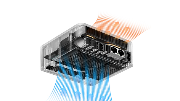 通过底部进风气流循环带走机器内部热量,有效降低CPU,内存和SSD等部件温度